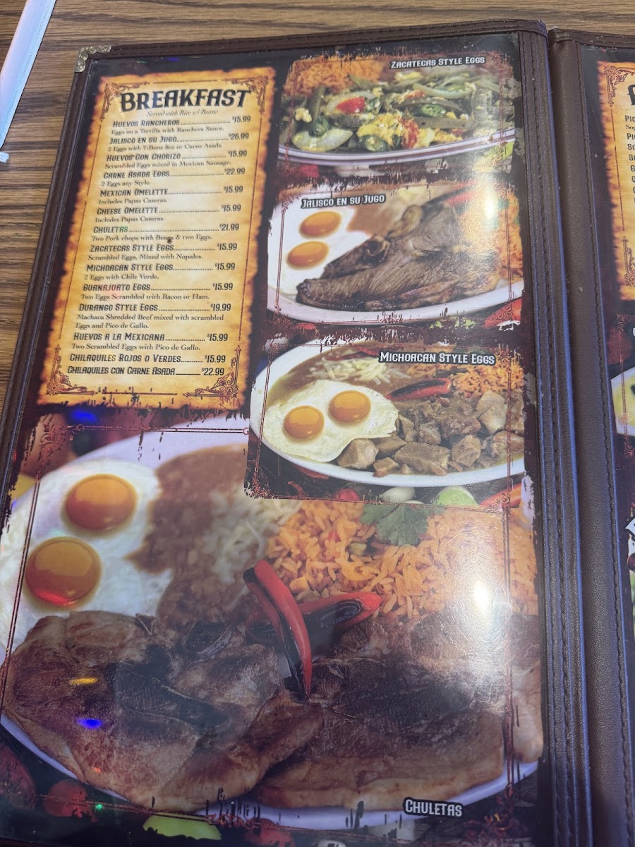 - Kids Corner: Includes child-friendly breakfast options such as pancakes with eggs and bacon, scrambled eggs with Mexican sausage or ham, and simpler dishes like a hamburger served with fries. Cheese enchiladas and taquitos are also available for younger diners.