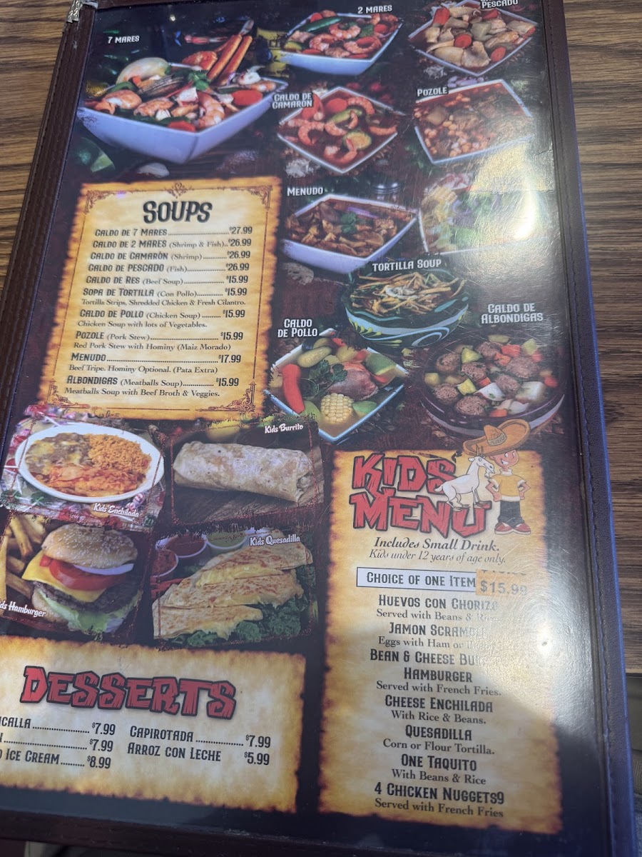 - Appetizers: Features traditional starters including gorditas with choice of meats, consome de birria (a rich consommé), and seafood tostadas with shrimp, octopus, and imitation crab served on fried tortillas.